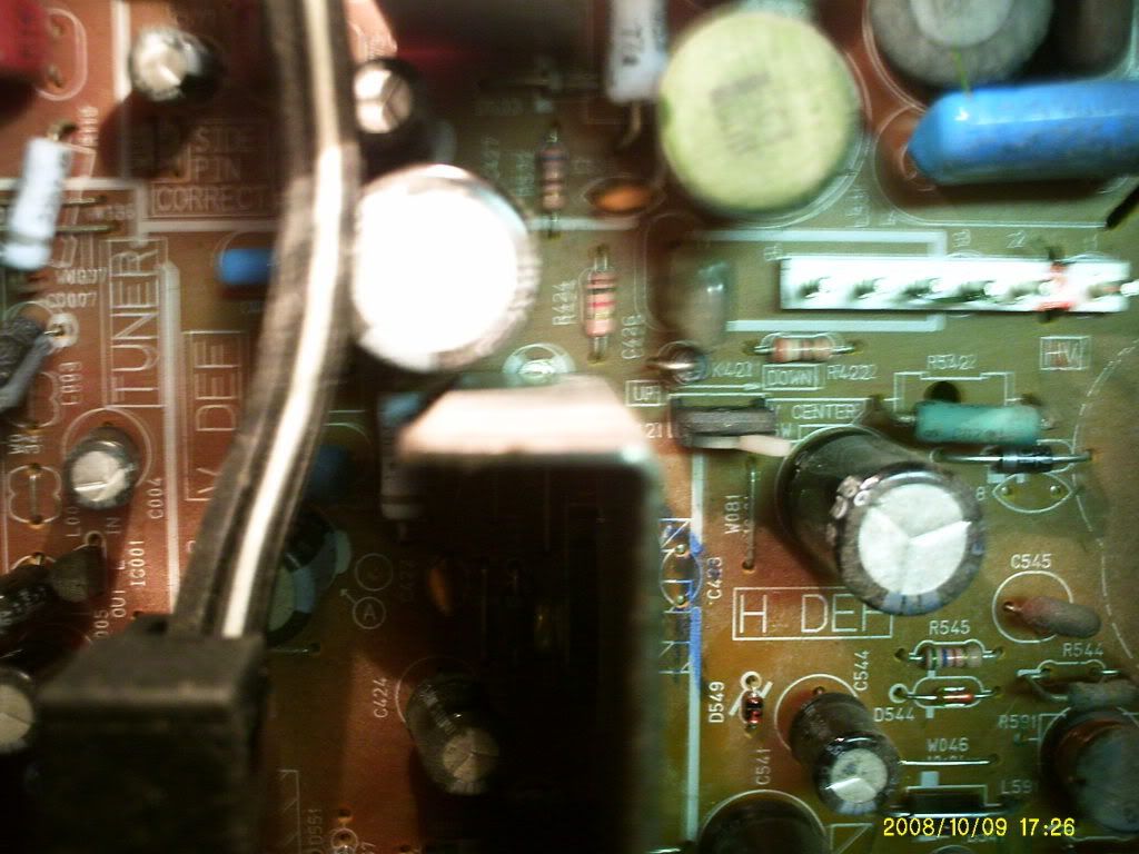 I looked at the circuit board and there were very helpful printouts of the general circuitry for certain functions of the Tv (ex. Isolated, Tuner, V-Def, H-Def, Micom, Live, Power, and of course, HV DANGER!). They are printed directly onto the PCB and I'm guessing the problem will be somewhere in the V-Def territory? I can see the labels on the board too and I see resistors, diodes, capacitors,  and that IC you were talking about attached to a long heatsink. Is this the right area where I can start my testing?    There is a picture of the location of the H-Def and V-Def I took a little earlier...sorry about the quality, my digital camera is a little on the cheap side...    http://i212.photobucket.com/...stuck3r/PICT0068.jpg